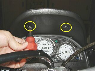 今回はメーターカバーごと外しているので、○のネジとナットを外します。