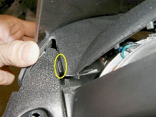 全部ネジを外すと簡単に取れると思いますが、メーター裏のカバーは、左右にツメがあります。