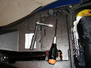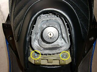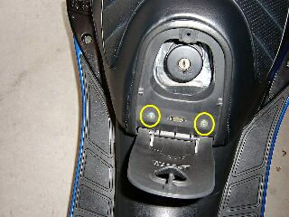 ガソリン入れるトコのカバーを外したら見えるナット2本です。