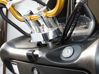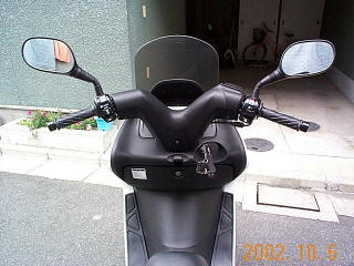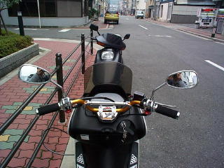 バーハンはカスタムパーツフタイさん(CPF)で新車購入すると、ポスト,ハーディハンドル,ステンメッシュブレーキホース,メッキ延長スイッチ,工賃込みで、4万円(やったかな?)とのことでしたので、新車購入時にお願いしておきました。自分では取り付けてない(^^ゞ