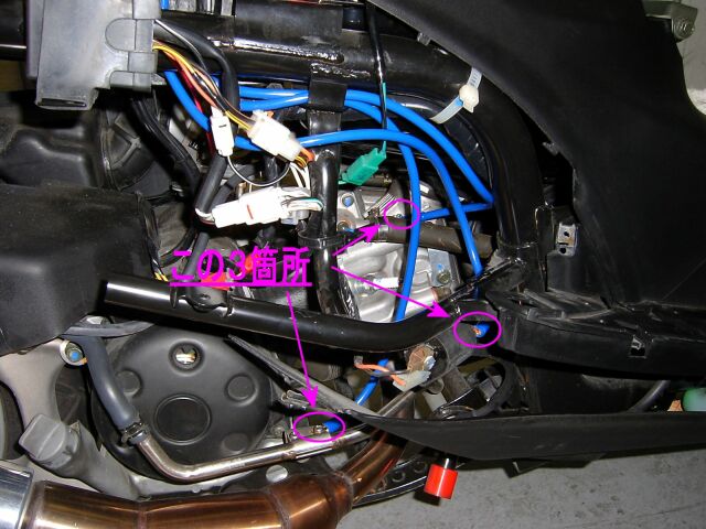 太いアース線を3本も入れたので、バッテリーの所は、もう、大変!