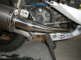 エキパイはサイレンサーの手前で徐々に膨らんでいます。