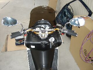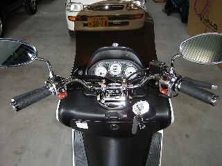 写真では分かり難いですが、ハンドルが相当絞ってあるので、すり抜けが超ラクになりました。ハイスロも最高(笑