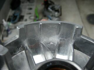 KOSOのプーリー画像なんですけど、元々、金型が悪いのか、こんな感じでヒビみたいなのがあるらしいです。 これも綺麗にしたろかなと思ったんやけど、出来まへんでした。
