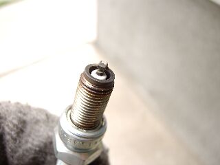 もう少し寒い時期に、イリジウム付けてた時があったんだけど、その時は碍子部分が茶色く焼けていた。