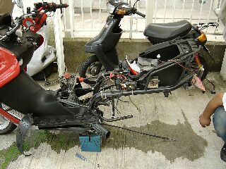 T氏「作業性を考慮して、フレームとエンジン部分を切り離します」
