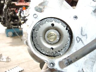 T氏「アウターローターのタイミングマーク(Tの字)を圧縮上死点に合わせます」