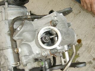 T氏「マフラー、燃料タンク、キャブ、ホース類、電装を元に戻しラジエター液を注入します。空キックを数回しラジエター液をシリンダー、ヘッド部分に回してからエンジン始動です。暖気しながら不足分のラジエター液注入、エア抜きをします。完全暖気後キャブセッティングをしカウル、シート等を元に戻し終了です。オイル、水漏れが無いか念の為にチェックしておきましょう」