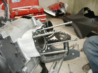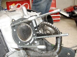 T氏「ウォーターポンプの取り外しです」