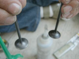 T氏「幸いバルブガイドへの影響は大丈夫のようですがバルブシート当たり不具合及び吸気バルブが若干変形していましたので、この後、新品バルブを擦り合わせし組み込みます。ついでにバルブステムシールも新品に交換します」