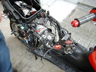 「作業内容は、某バイク店にて組まれたDCRキットですが、不具合が出ていますので組み直しです」