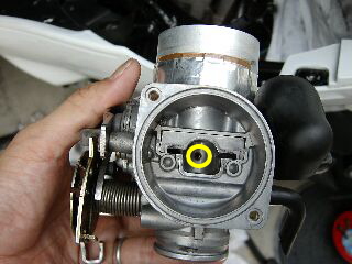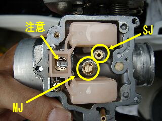 この穴がMJに繋がっていて、ここからガソリンが上がってくる訳です。