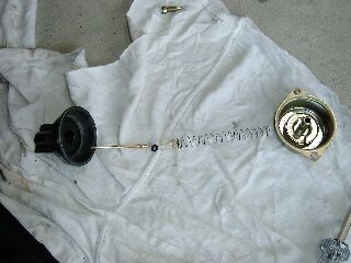 オートチョークの配線、燃料ホース、アクセルワイヤー等を外して、キャブを引き抜きます。