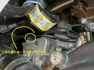 2箇所から圧を抜くってことですね。キャブの上を通しています。